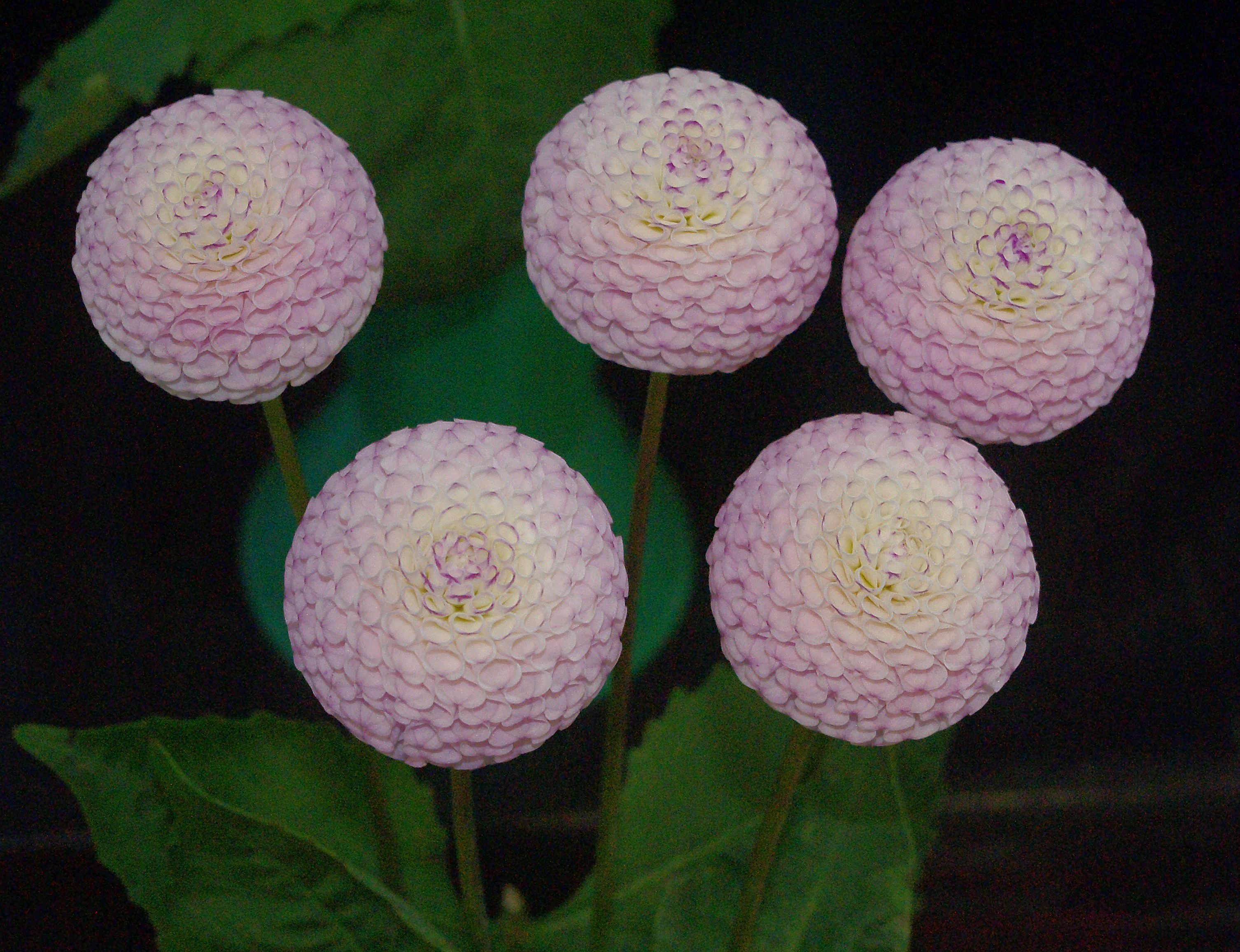 The NDS Silver medal was won by Dave Gillam with a vase of Gurtla Twilight. This vase ( photo below right) showed magnificent form, uniformity of blooms and attracted the attention of all the judges. This also won the Violet Davies Premier Award for best vase in the show, the H. Dunkley Trophy for best vase of poms in the show. The vase of poms, together with a vase of Barbarry Pip, which had terrific form, won Dave the Stella Trophy. Even though Dave only had 4 vases of Poms and vase of min decs, he travelled the 350 miles to enter the show because he considers the Midlands to be a very friendly society. A vase of Willo’s Violet and two more vases of Gurtla Twilight saw Dave win the George Irvine Perpetual Challenge Cup.